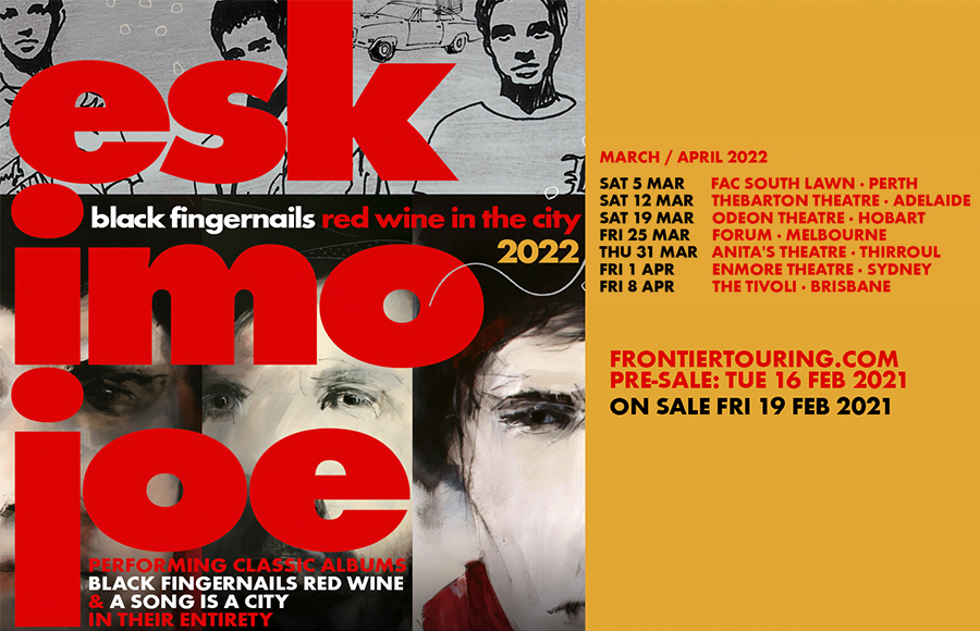 Eskimo Joe will kick off their tour at Perth’s Fremantle Arts Centre (South Lawn) on Saturday 5 March, 2022, before heading to Adelaide’s Thebarton Theatre on Saturday 12 March. Next up is Hobart’s Odeon Theatre on Saturday 19 March, before they head across to Melbourne’s Forum on Friday 25 March, and up to Anita’s Theatre in Thirroul on Thursday 31 March. Rounding out the tour is Sydney’s Enmore Theatre on Friday 1 April, 2022, before finishing up at Brisbane’s Tivoli Theatre on Friday 8 April, 2022.